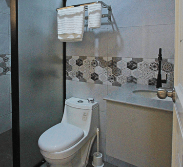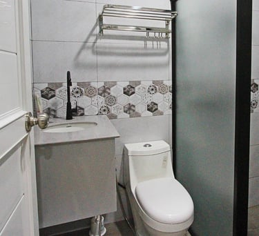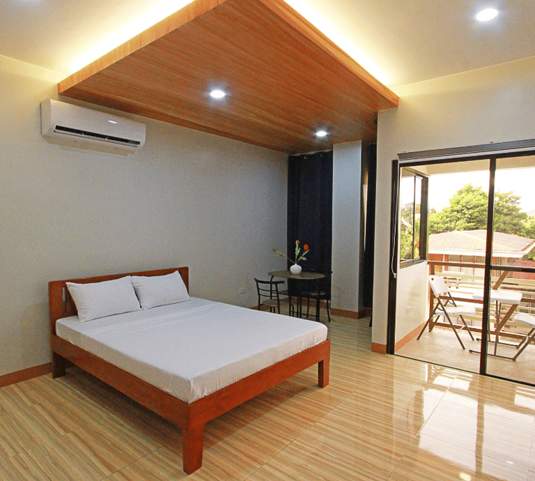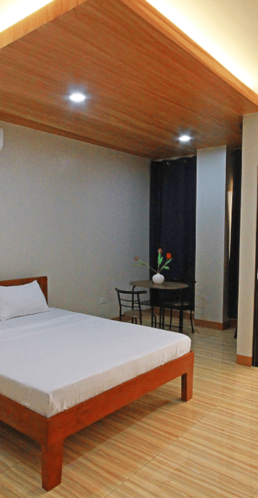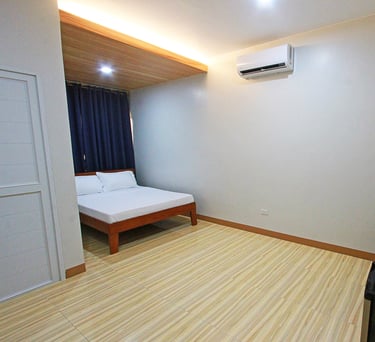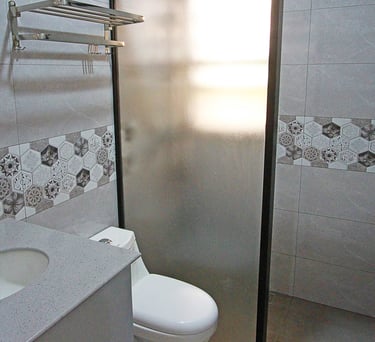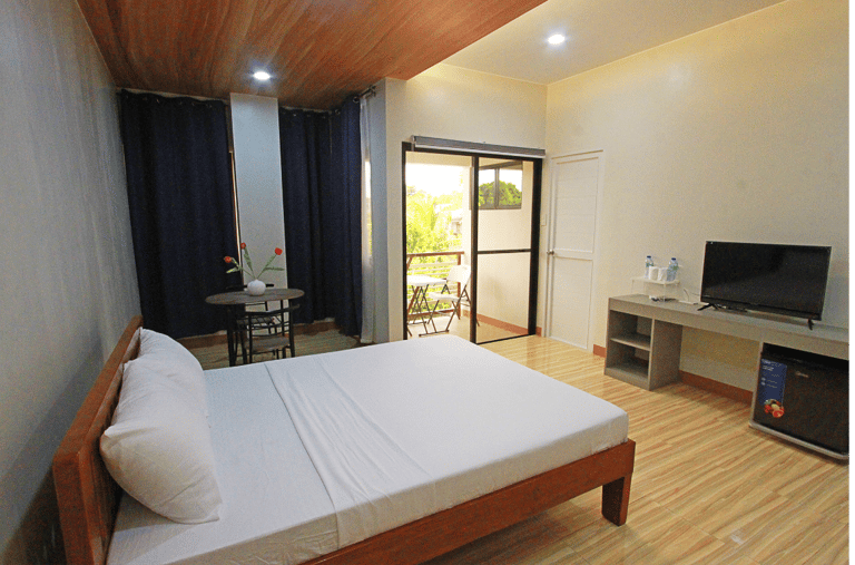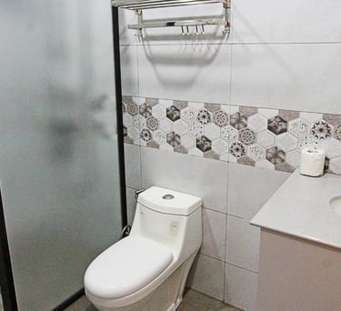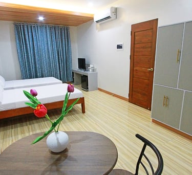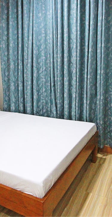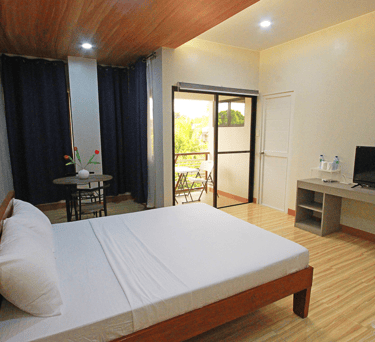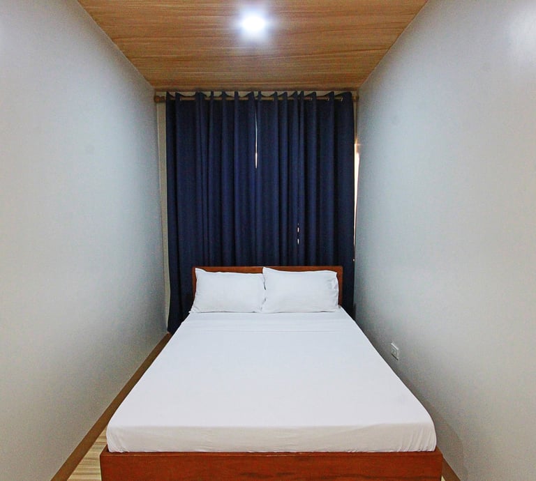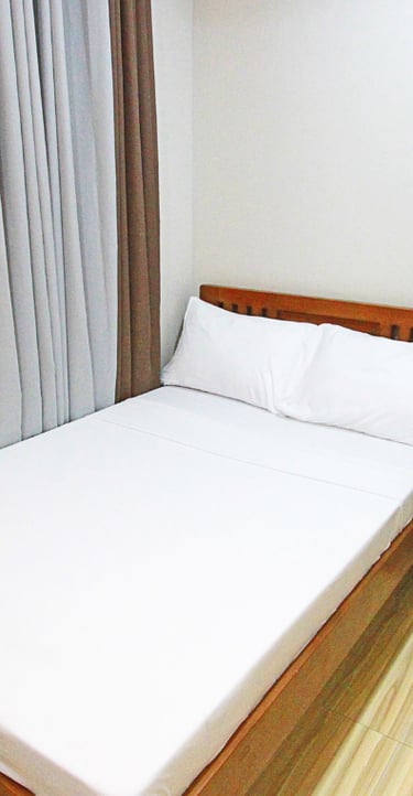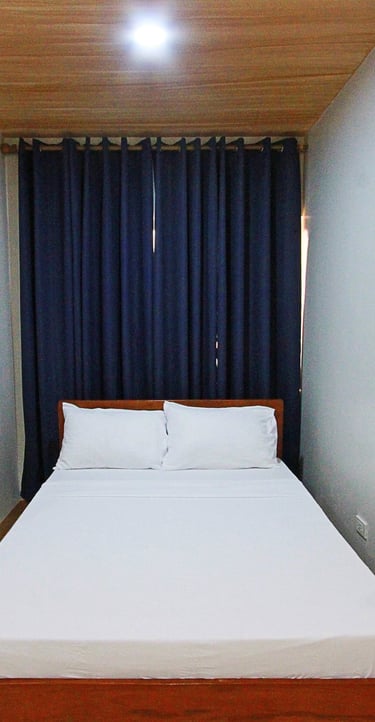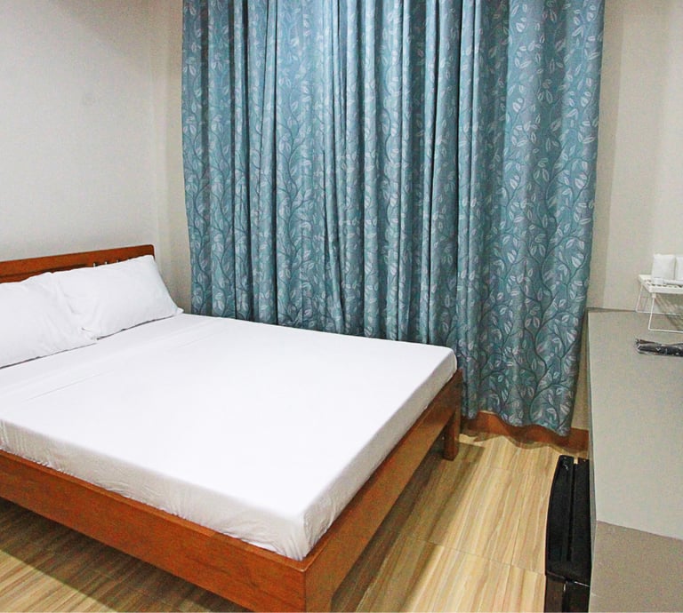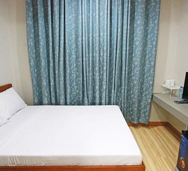 Designed for comfort and practicality, ideal for solo travelers or couples. It includes one cozy semi-double bed, a balcony, a small cabinet, and a 36 in. TV, and a mini refrigerator for convenience.The private bathroom features a sink, toilet, and shower with hot and cold water, ensuring a refreshing stay. Perfect for a hassle-free experience.